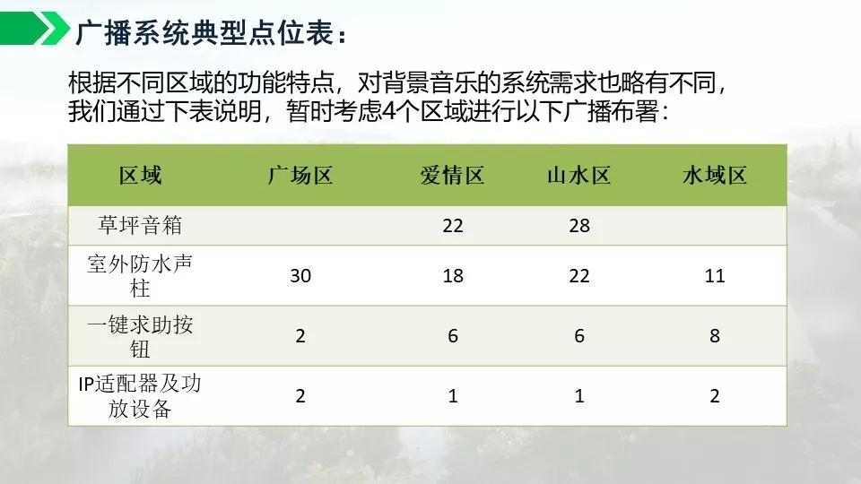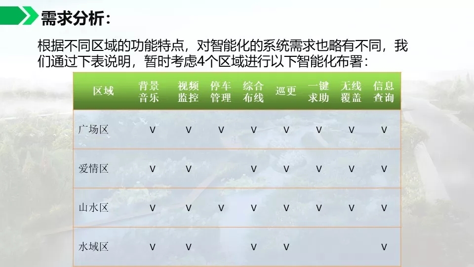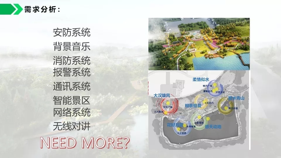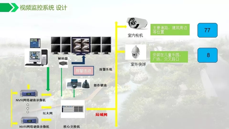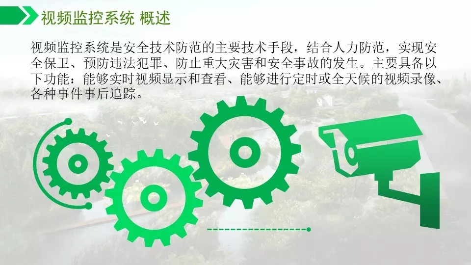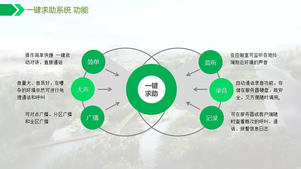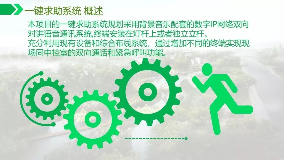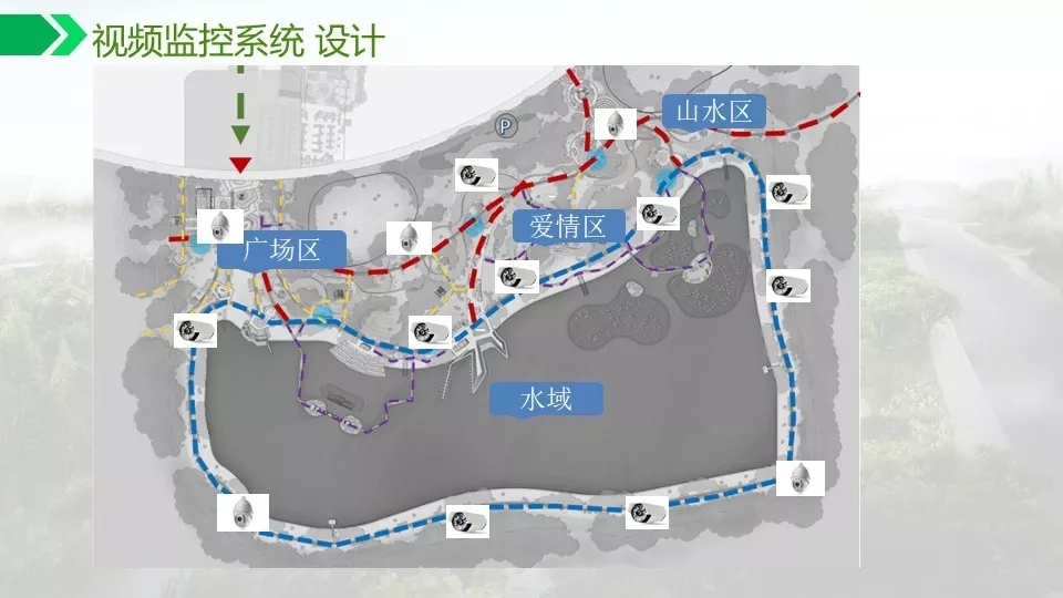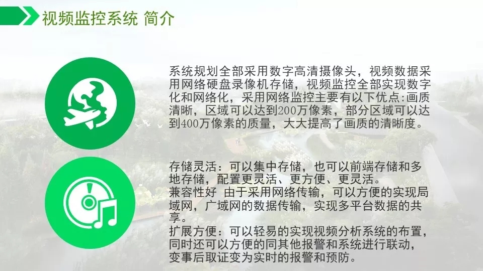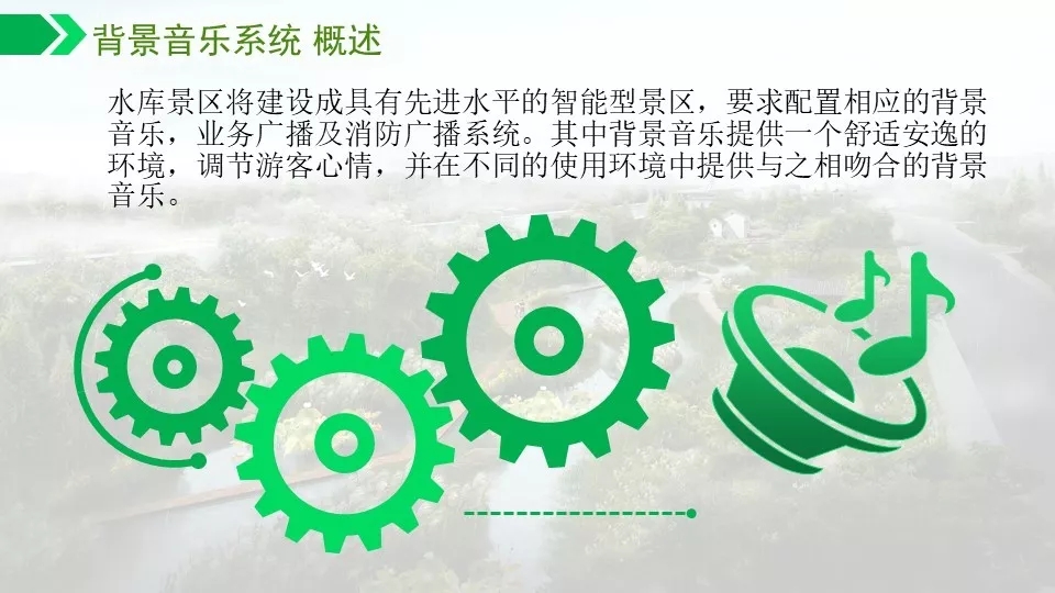 背景音樂可以實現自動分區,定時播放,實現無人值守。通過數字視頻的智能分析功能可以對危險區域,如水麵,陡坡等進行預警,如有非法進入,及時報警,預防事故發生。