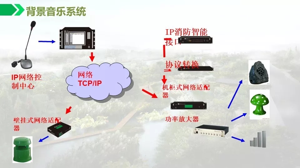 背景音樂采用IP功放,突破了傳統模擬廣播係統的內容局限、空間局限和功能局限,可以靈活的擴展和延伸。