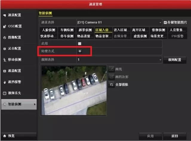 跟越界偵測一樣,根據具體使用需求,設置區域入侵需要出發的通道、布防時間以及聯動方式。