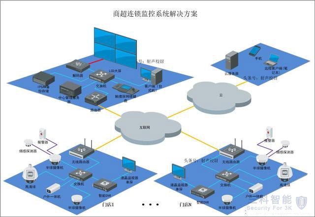 商超是人們日常生活中最常接觸的環境,這裏不僅人流較大,且範圍分布廣泛,在這種極易發生盜竊事故和購物糾紛等事件的環境中,普通視頻監控係統顯然已經不能滿足要求,新型商超連鎖視頻監控係統的誕生讓商超連鎖變得更高效、更智能、更安全。同時,伴隨著大數據技術的應用,監控係統的作用不僅僅是安全防範,更能夠為商超企業提供寶貴的商業分析數據。